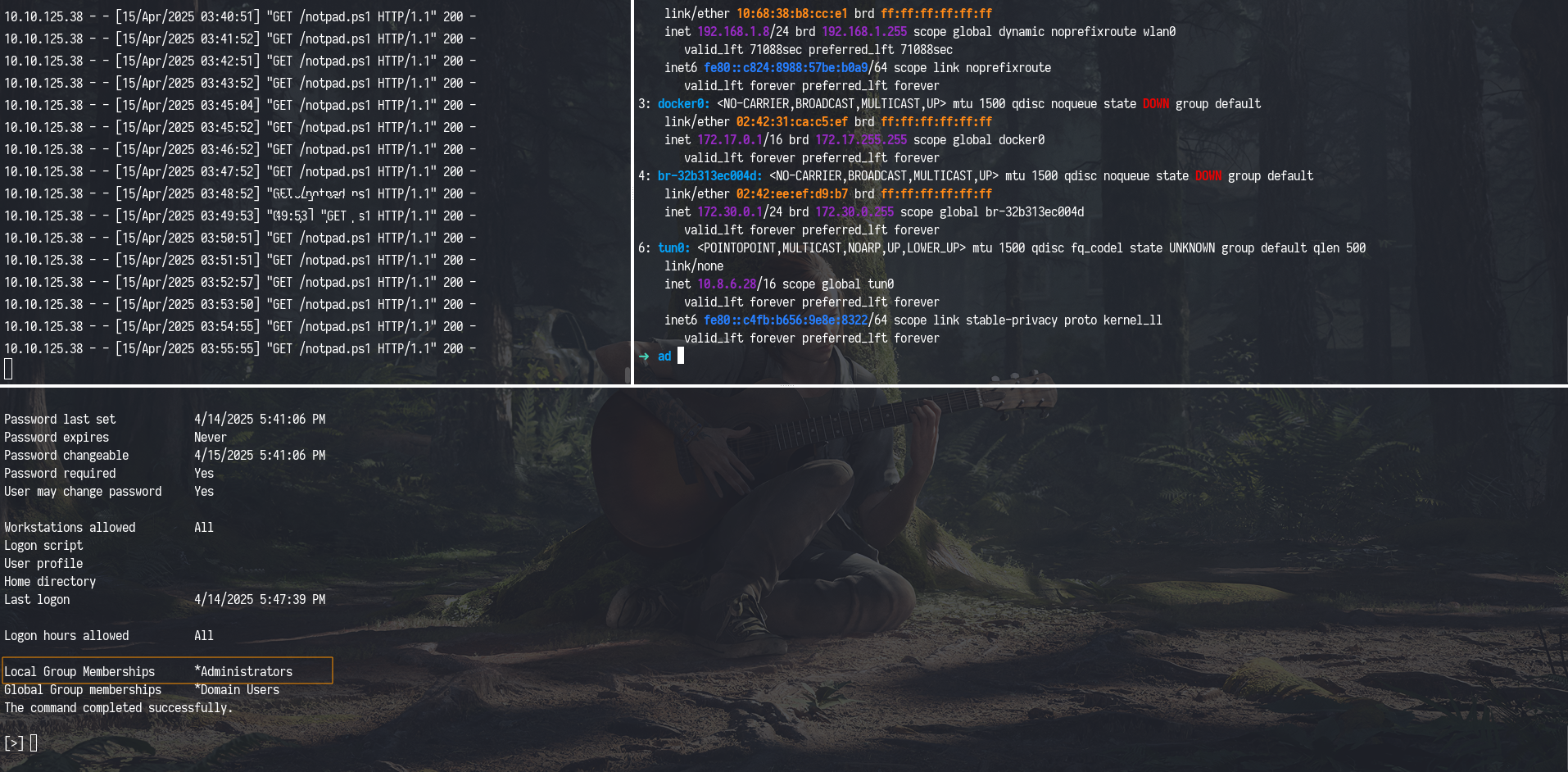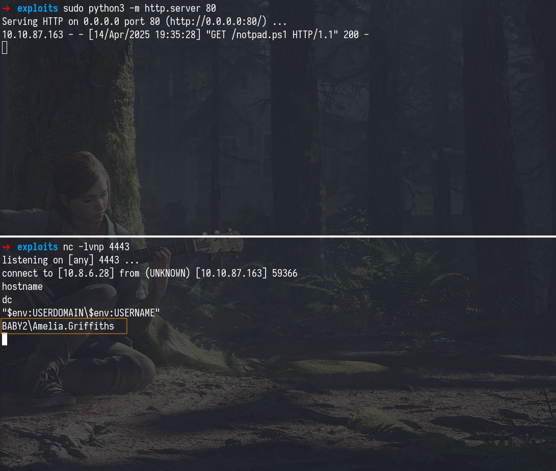 (a PowerShell reverse shell script) and a Netcat listener to catch the connection. As soon as a user triggered the logon script, we received a reverse shell confirming successful exploitation of a writable logon script via GPO misconfiguration