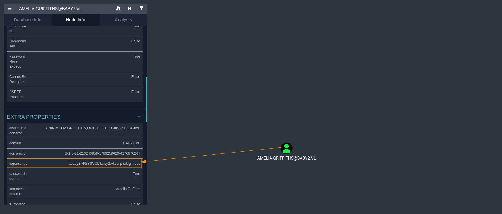 While reviewing the BloodHound data, we identified that the user AMELIA.GRIFFITHS